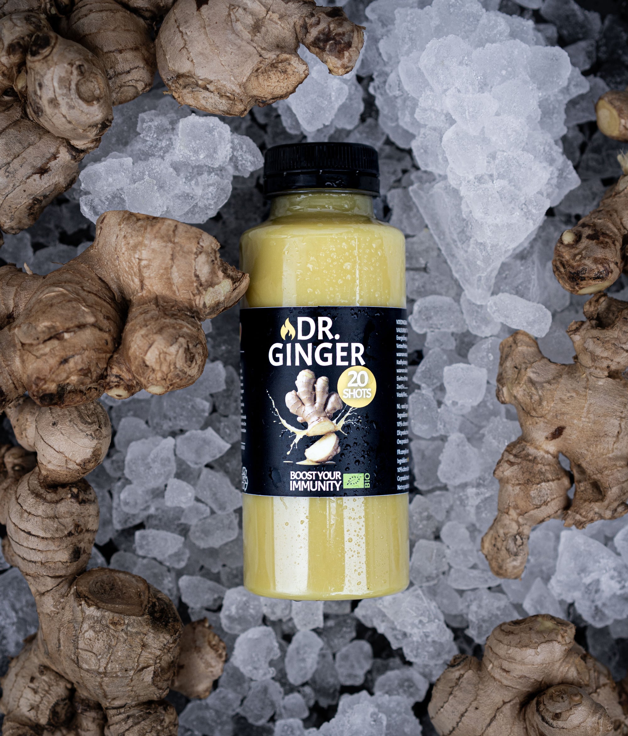 Déclenché par l'effet des shots de gingembre de son père, combiné à une passion frénétique pour la santé et le sport, Dean s'est plongé dans le monde merveilleux du gingembre. Le fait de presser lui-même le gingembre pour les amis et la famille a rapidement donné naissance à DR Ginger, auquel s'est joint plus tard Jonathan, son ami d'enfance et voisin.